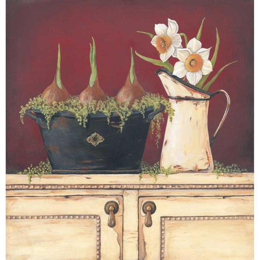 Asian Daphodile Floral Black Modern Wood Framed Art Print by Moulton, Jo