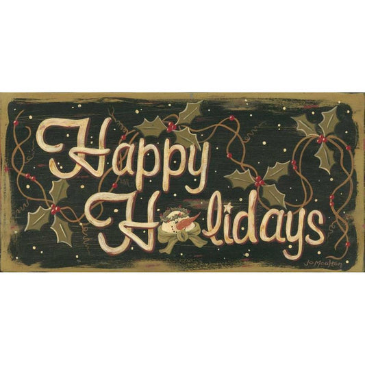 Happy Holidays Black Modern Wood Framed Art Print by Moulton, Jo