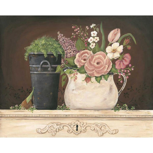 Floral with Black Bucket Black Modern Wood Framed Art Print by Moulton, Jo