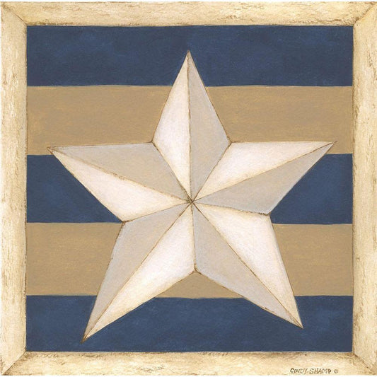 White Star, Blue Stripes Black Modern Wood Framed Art Print by Shamp, Cindy