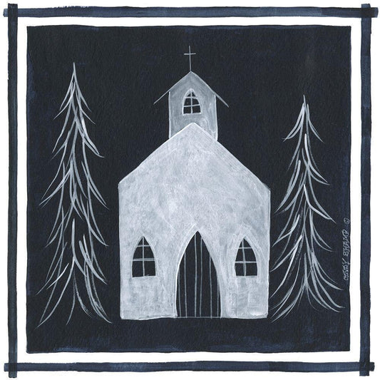 White Church Black Modern Wood Framed Art Print by Shamp, Cindy