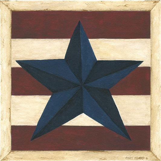 Blue Star, White Stripes Black Modern Wood Framed Art Print by Shamp, Cindy