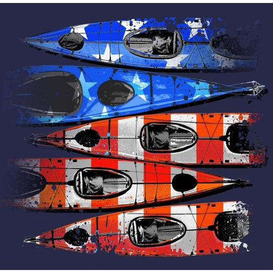 Flag Kayaks Black Modern Wood Framed Art Print by Baldwin, Jim