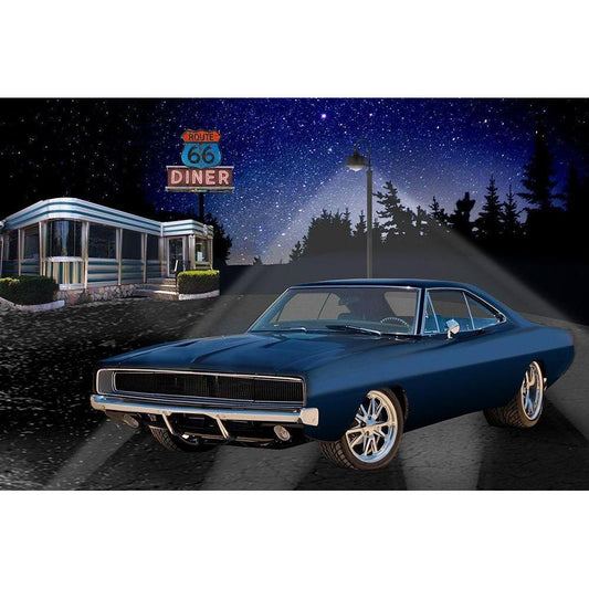 Diners and Cars VI Black Modern Wood Framed Art Print by Flint, Helen