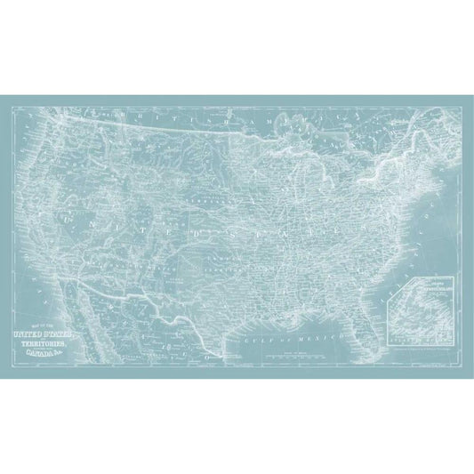 US Map on Aqua Black Modern Wood Framed Art Print by Vision Studio