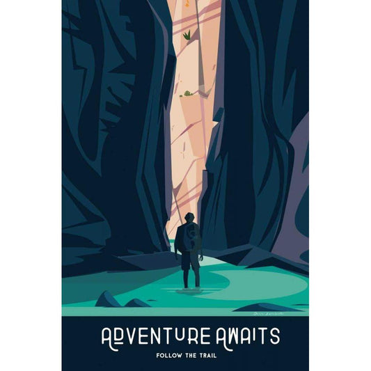 Adventure Awaits Black Modern Wood Framed Art Print by Escalante, Omar