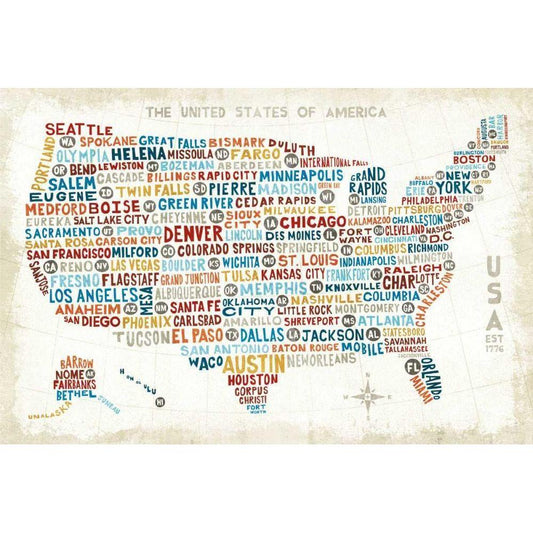 Illustrated USA Black Modern Wood Framed Art Print by Mullan, Michael