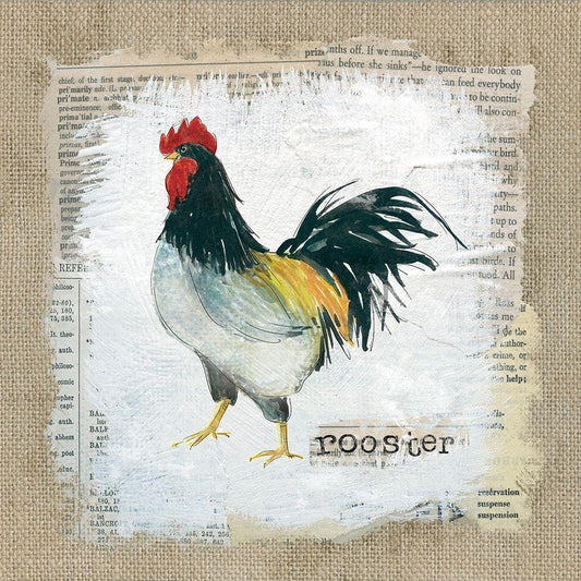 Burlap Rooster Black Modern Wood Framed Art Print by Robinson, Carol
