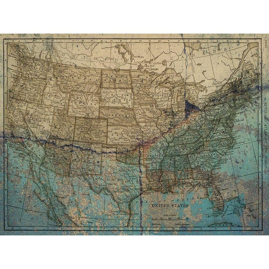 Blue Blue Map America Black Modern Wood Framed Art Print by Lewis, Sheldon