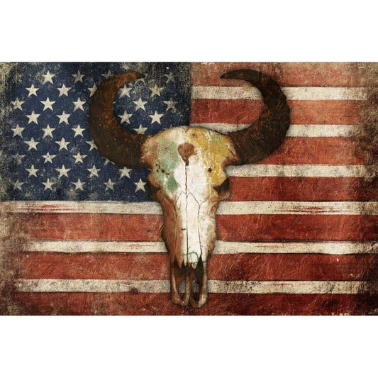 American Floral Bull Black Modern Wood Framed Art Print by Grey, Jace