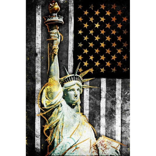Statue Of America Black Modern Wood Framed Art Print by Grey, Jace
