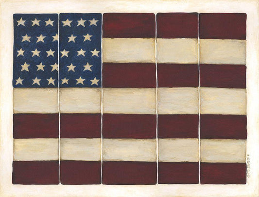 Tiled Flag White Modern Wood Framed Art Print with Double Matting by Shamp, Cindy