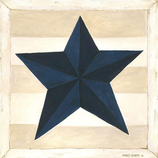 Blue Star, White Stripes White Modern Wood Framed Art Print with Double Matting by Shamp, Cindy