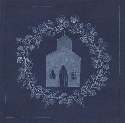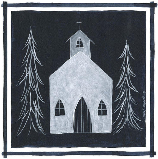 Blue Church White Modern Wood Framed Art Print with Double Matting by Shamp, Cindy