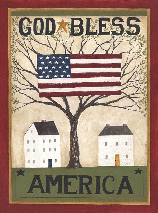 God Bless America White Modern Wood Framed Art Print with Double Matting by Shamp, Cindy