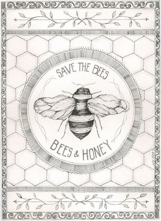Save the Bees White Modern Wood Framed Art Print with Double Matting by Shamp, Cindy