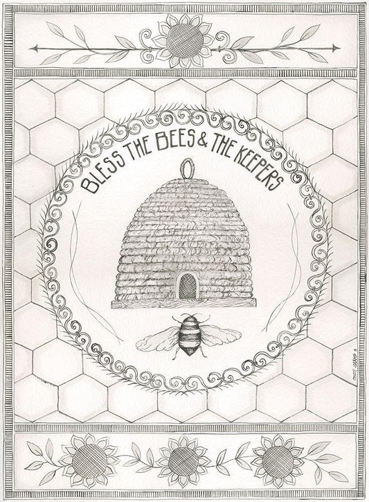 Bless the Bees White Modern Wood Framed Art Print with Double Matting by Shamp, Cindy