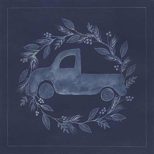 Blue Truck White Modern Wood Framed Art Print with Double Matting by Shamp, Cindy