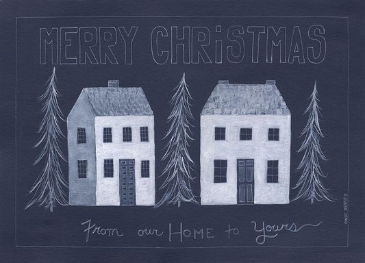 Blue House White Modern Wood Framed Art Print with Double Matting by Shamp, Cindy