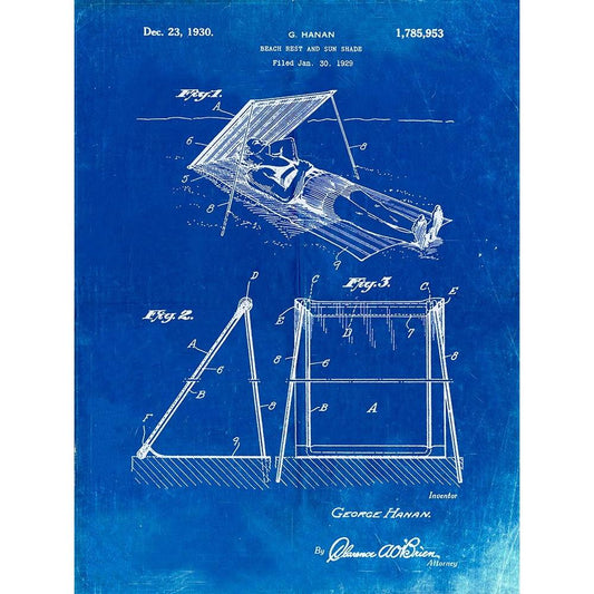 PP723-Faded Blueprint Beach shade 1929 Patent Wall Art Poster Black Modern Wood Framed Art Print by Borders, Cole