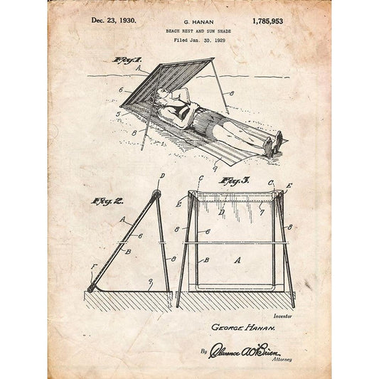 PP723-Vintage Parchment Beach shade 1929 Patent Wall Art Poster Black Modern Wood Framed Art Print by Borders, Cole
