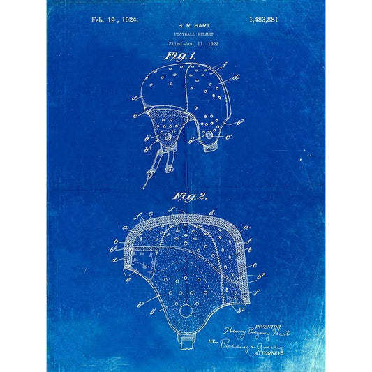 PP827-Faded Blueprint Football Helmet Patent 1922 Wall Art Poster Black Modern Wood Framed Art Print by Borders, Cole