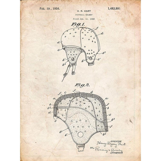 PP827-Vintage Parchment Football Helmet Patent 1922 Wall Art Poster Black Modern Wood Framed Art Print by Borders, Cole