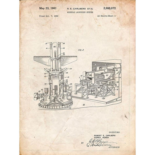 PP959-Vintage Parchment Missile Launching System patent 1961 Wall Art Poster Black Modern Wood Framed Art Print by Borders, Cole