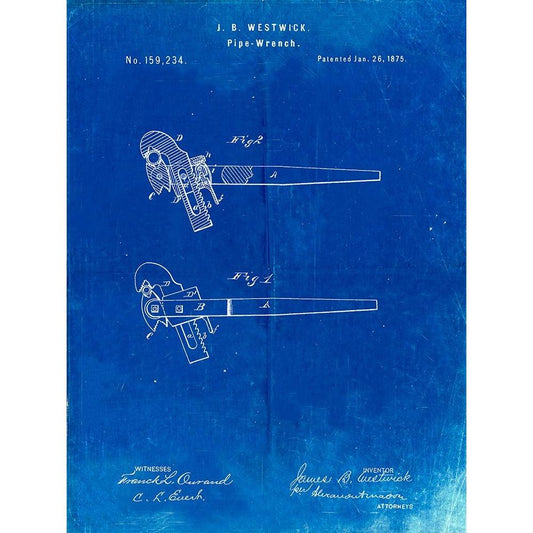 PP987-Faded Blueprint Pipe Wrench Patent Wall Art Poster Black Modern Wood Framed Art Print by Borders, Cole