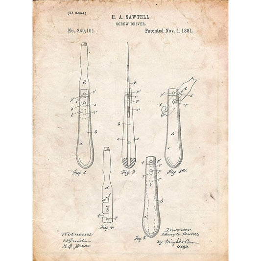 PP1032-Vintage Parchment Screw Driver Patent 1881 Wall Art Poster Black Modern Wood Framed Art Print by Borders, Cole