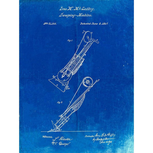 PP1121-Faded Blueprint Vaccuum Cleaner Patent Black Modern Wood Framed Art Print by Borders, Cole