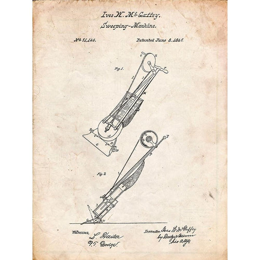 PP1121-Vintage Parchment Vaccuum Cleaner Patent Black Modern Wood Framed Art Print by Borders, Cole
