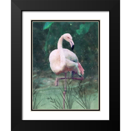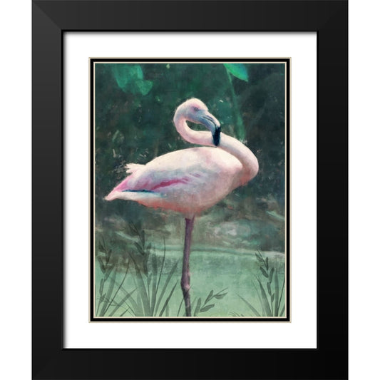 Peach Flamingo Black Modern Wood Framed Art Print with Double Matting by Blue, Nina