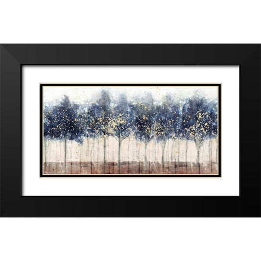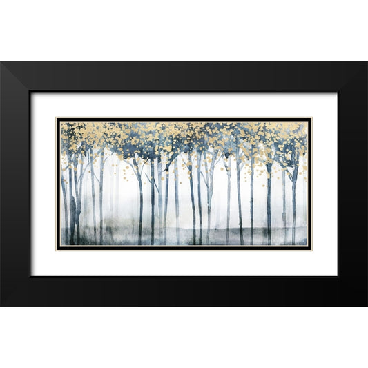 Golden Blue Trees II Black Modern Wood Framed Art Print with Double Matting by Blue, Nina
