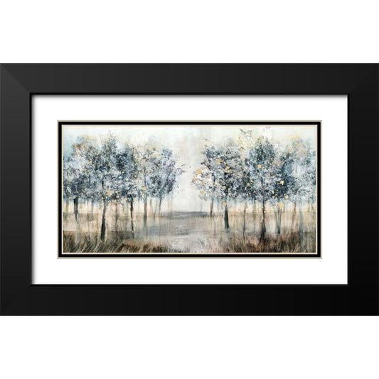 Golden Blue Trees Black Modern Wood Framed Art Print with Double Matting by Blue, Nina