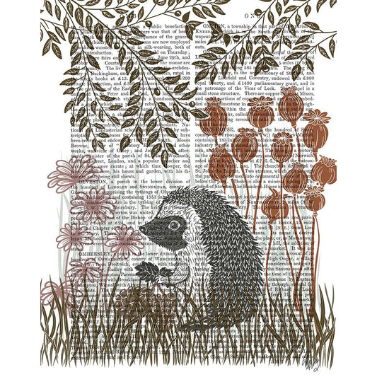 Country Lane Hedgehog, Earth Black Modern Wood Framed Art Print with Double Matting by Fab Funky