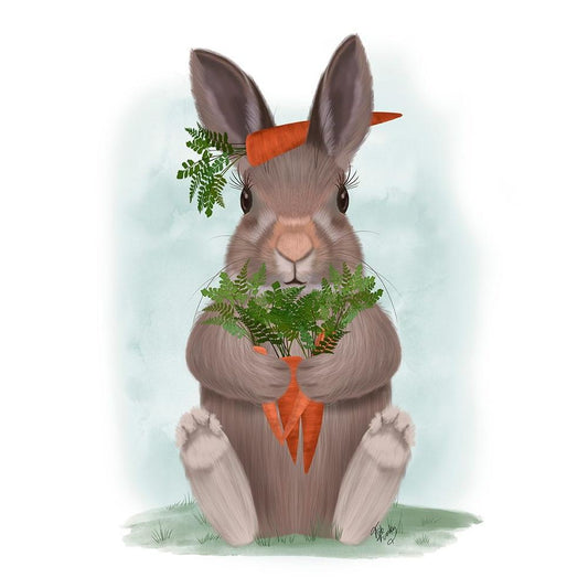 Rabbit Carrot Hug Black Modern Wood Framed Art Print with Double Matting by Fab Funky