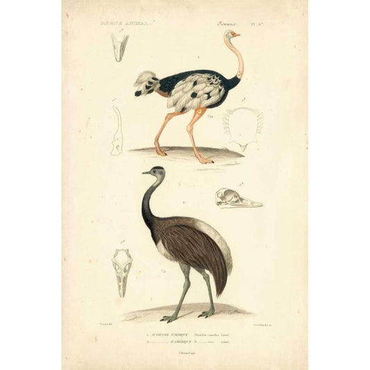 Antique Ostrich Study Black Modern Wood Framed Art Print with Double Matting by Remond, N.
