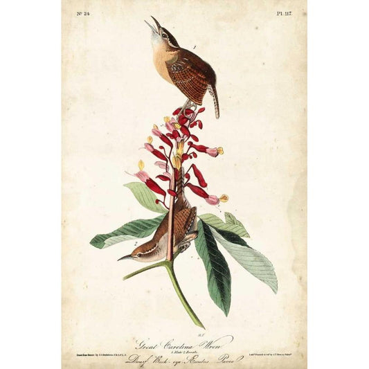 Great Carolina Wren Black Modern Wood Framed Art Print with Double Matting by John James Audubon