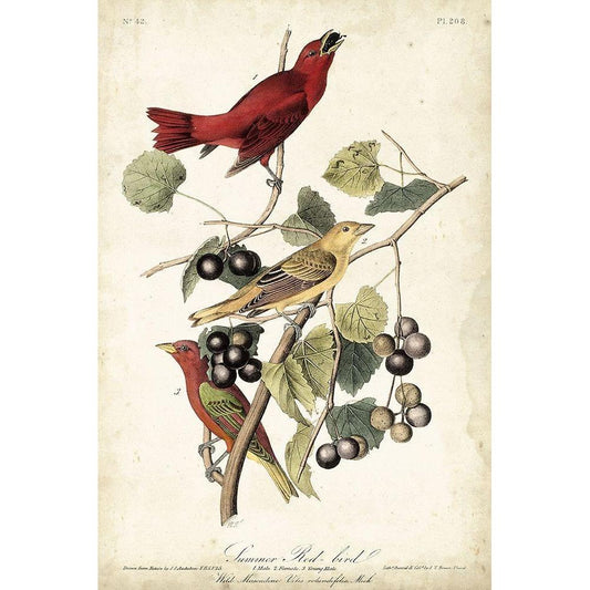 Summer Red Bird Black Modern Wood Framed Art Print with Double Matting by Audubon, John James