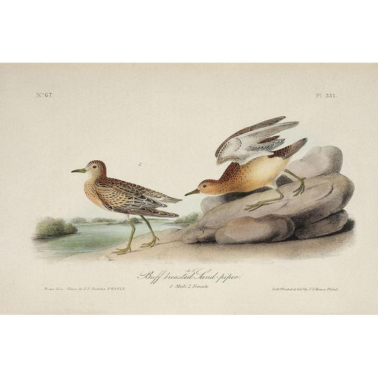 Buff Breasted Sandpiper (ASH) Black Modern Wood Framed Art Print with Double Matting by Audubon, John James