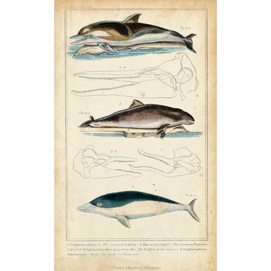 Antique Whale and Dolphin Study I Black Modern Wood Framed Art Print with Double Matting by G. Henderson