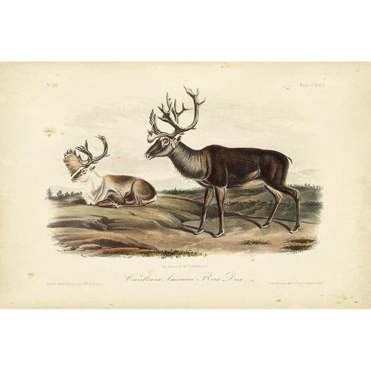 Caribou Black Modern Wood Framed Art Print with Double Matting by Audubon, John James
