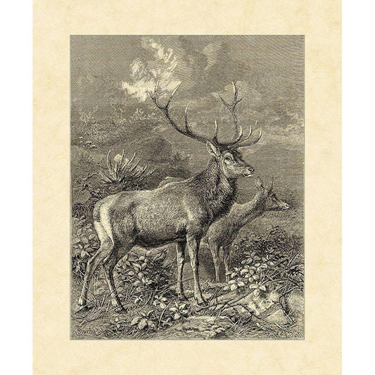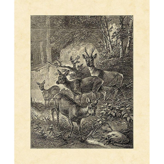 Vintage Roe Deer I Black Modern Wood Framed Art Print with Double Matting by Specht, Friedrich