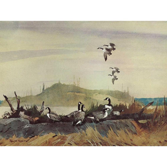Geese on the Great Flyway Black Modern Wood Framed Art Print with Double Matting by Mason, Roy M.
