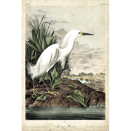 Snowy Heron Black Modern Wood Framed Art Print with Double Matting by Audubon, John James