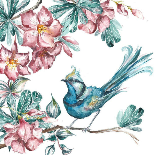 Island Living Bird and Floral II White Modern Wood Framed Art Print with Double Matting by Tre Sorelle Studios