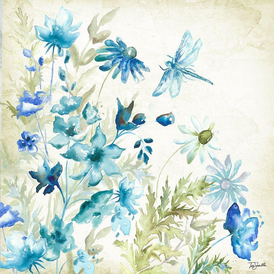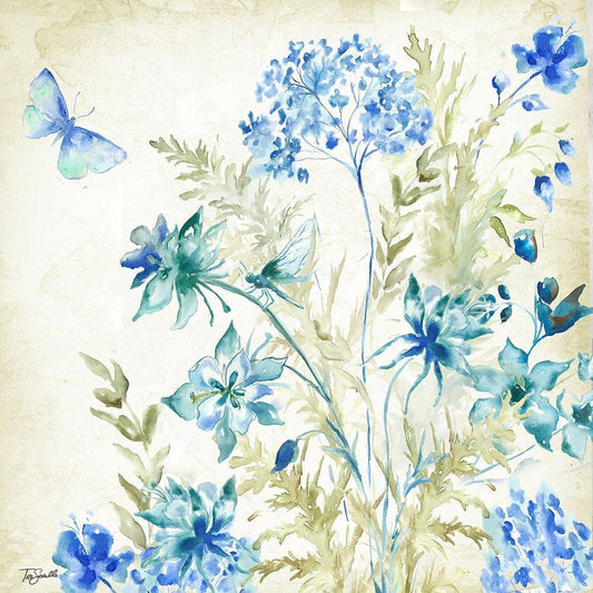 Wildflowers and Butterflies Square I White Modern Wood Framed Art Print with Double Matting by Tre Sorelle Studios