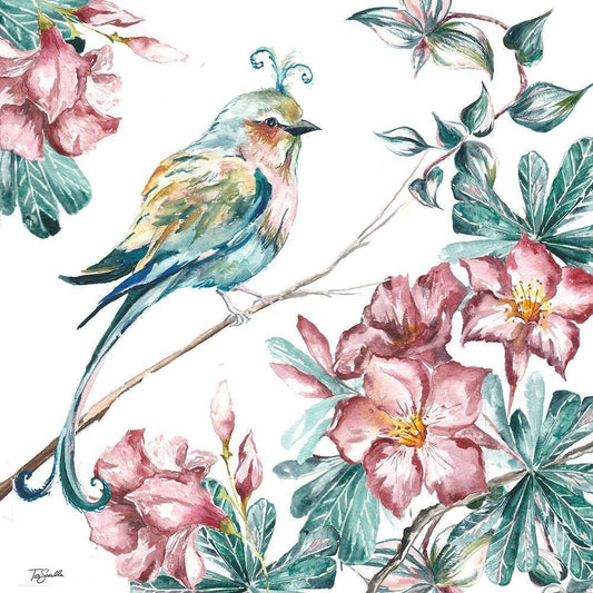 Island Living Bird and Floral I White Modern Wood Framed Art Print with Double Matting by Tre Sorelle Studios