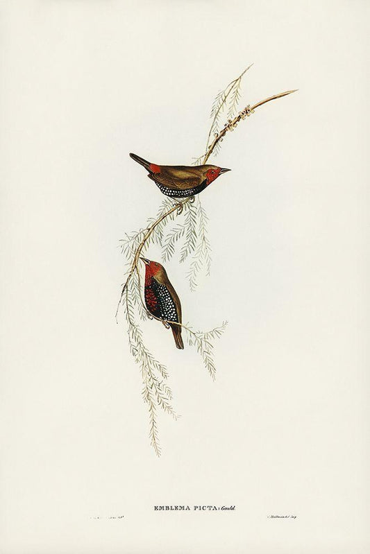 Painted Finch-Emblema picta White Modern Wood Framed Art Print with Double Matting by Gould, John